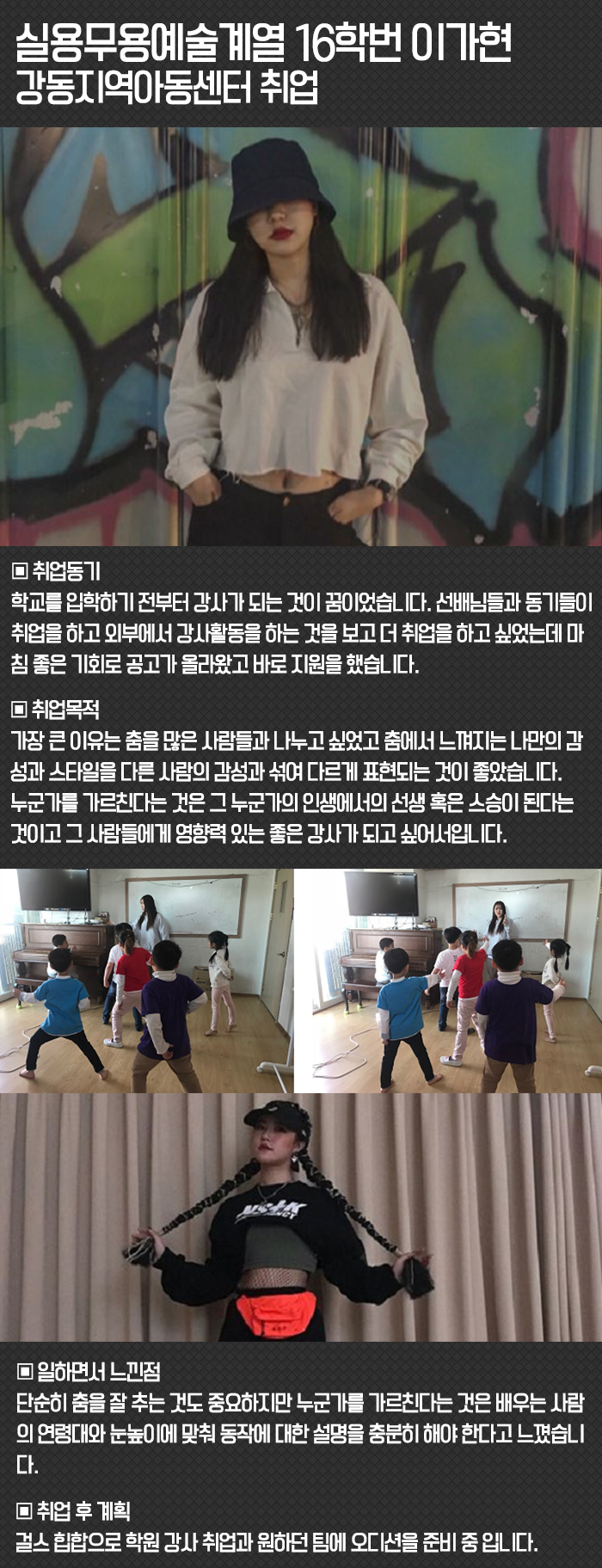 16학번 이가현 학생의 강동지역아동센터 취업 소식을 전해드립니다.