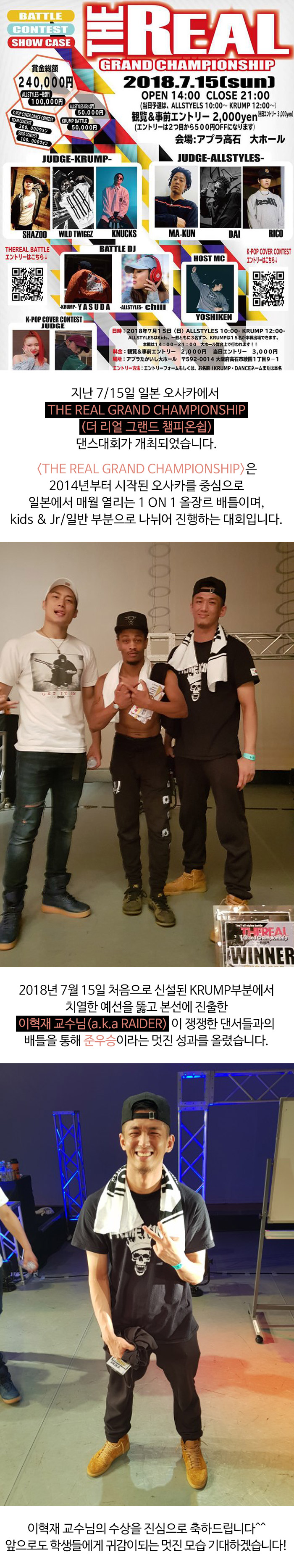 지난 7/15일 일본 오사카에서 'THE REAL GRAND CHAMPIONSHIP(더 리얼 그랜드 챔피온쉽)' 댄스대회가 개최되었습니다.