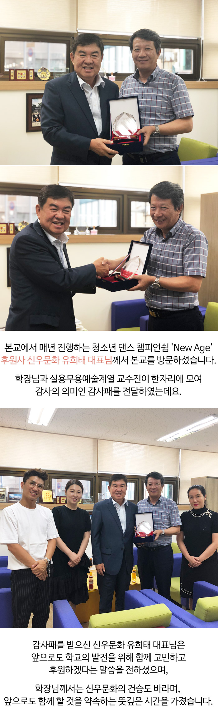 'New Age' 후원사 신우문화 유희태 대표님께 감사패를 전달하였습니다.