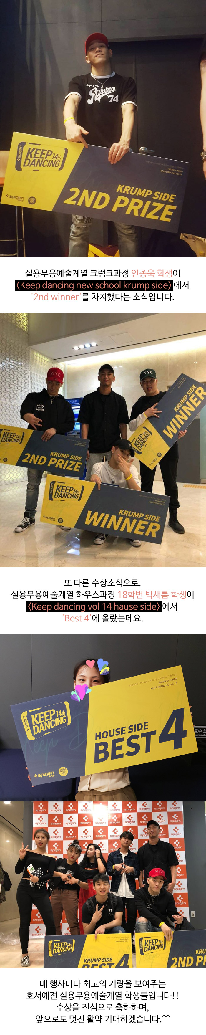 'KEEP DANCING 14TH' 대회에서 실용무용예술계열 학생들의 수상소식을 전해드립니다.
