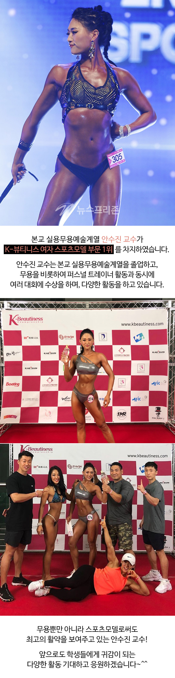 본교 실용무용예술계열 안수진 교수가 K-뷰티니스 여자 스포츠모델 부문 1위를 차지하였습니다.