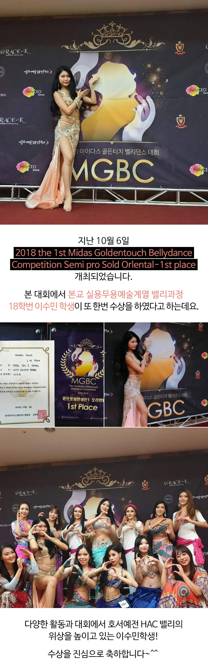 지난 10월 6일 2018 the 1st Midas Goldentouch Bellydance Competition Semi pro Sold Orlental-1st place가 개최되었습니다.