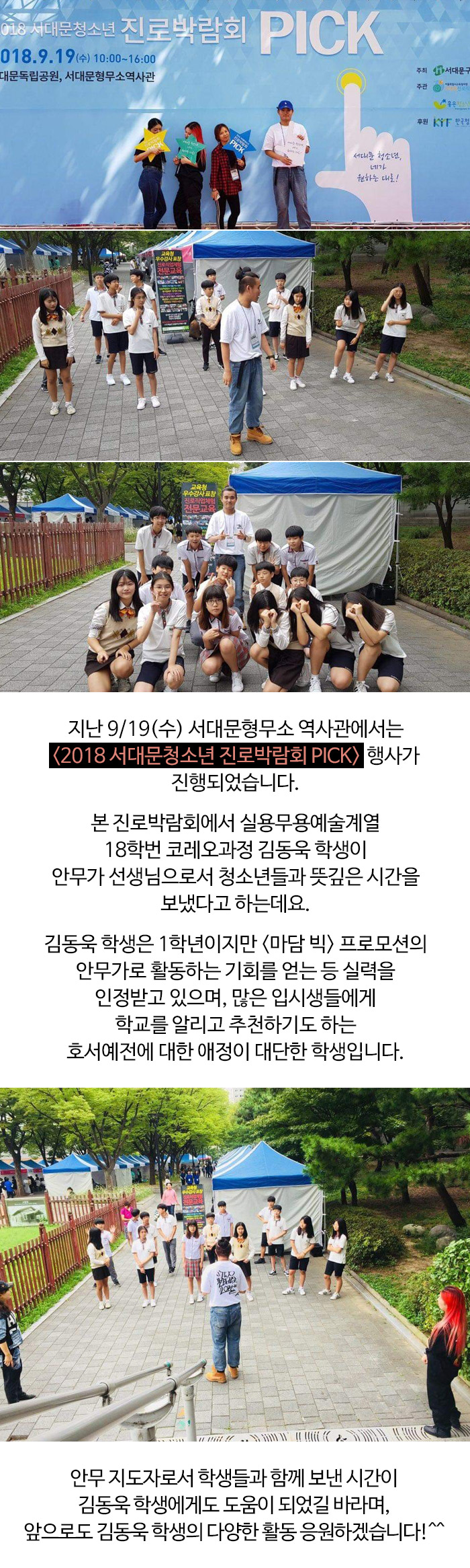 지난 9/19(수) 서대문형무소 역사관에서는 '2018 서대문청소년 진로박람회 PICK' 행사가 진행되었습니다.