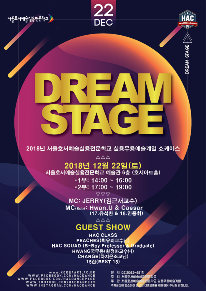 실용무용예술계열의 학기말 발표회 2018 드림스테이지가 오는 12월 22일(토) 열립니다.