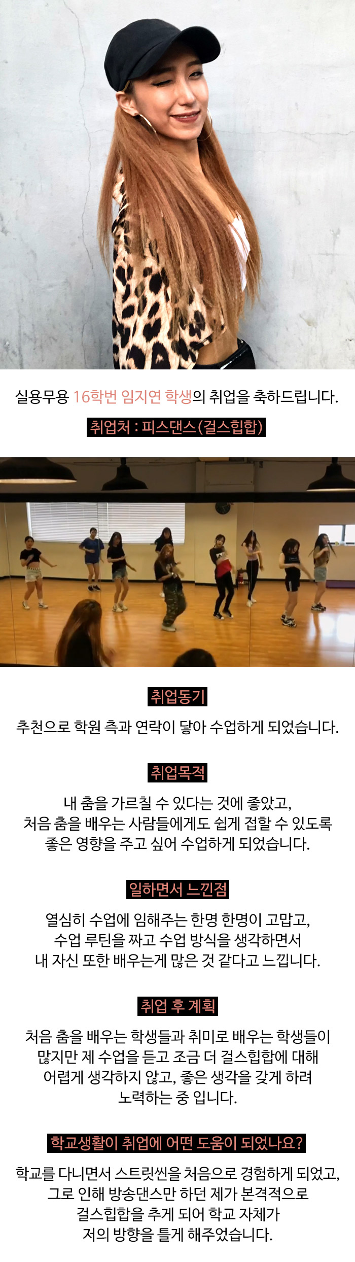 실용무용 16학번 임지연 학생의 취업을 축하드립니다.