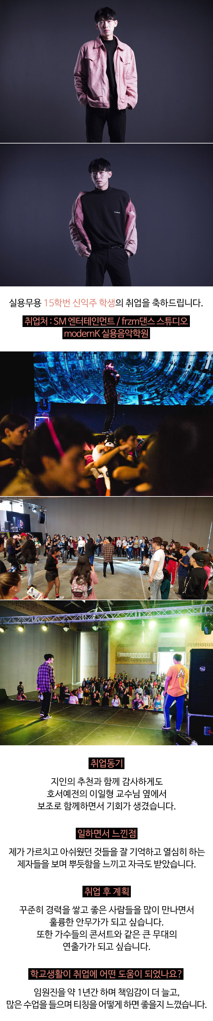 실용무용예술계열 15학번 신익주 학생의 취업을 축하합니다~ ^^