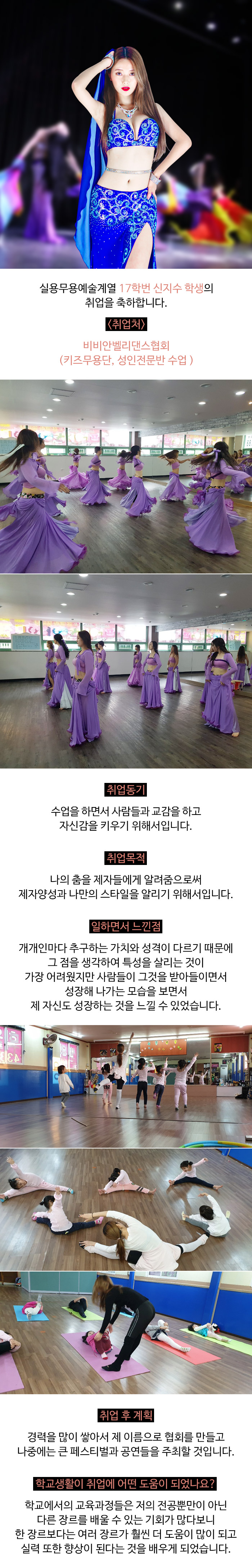 실용무용예술계열 17학번 신지수 비비안벨리댄스협회 취업