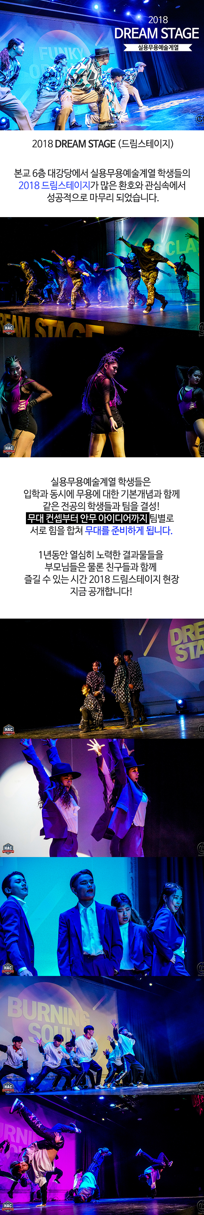 본교 6층 대강당에서 실용무용예술계열 학생들의 2018 드림스테이지가 많은 환호와 관심속에서 성공적으로 마무리 되었습니다.