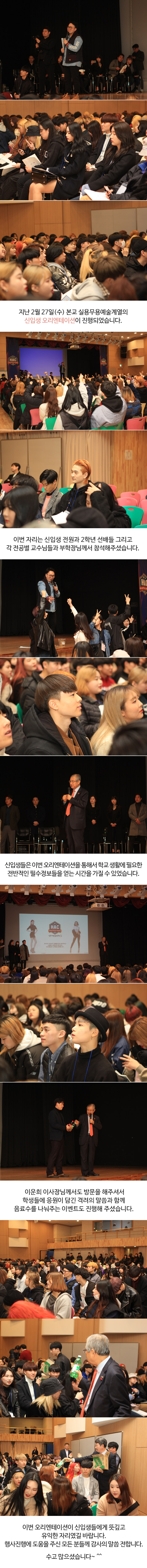 지난 2019년 02월 27일 수요일 본교 실용무용예술계열의 신입생 오리엔테이션이 진행되었습니다.
