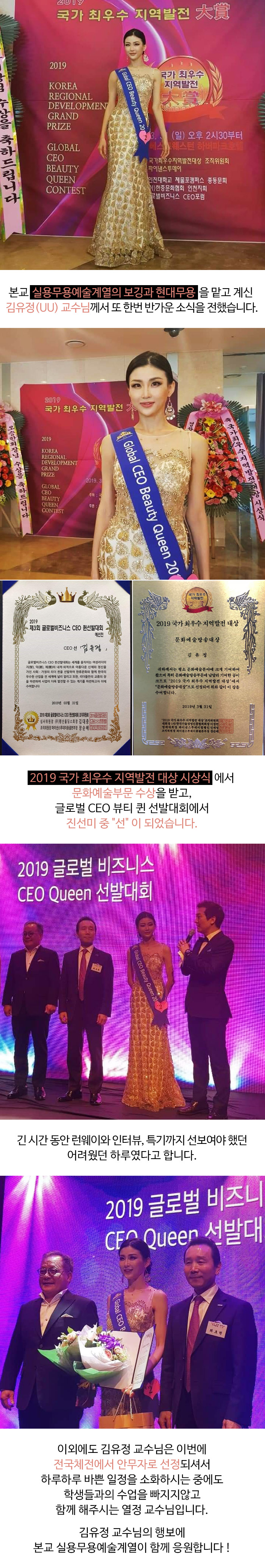 실용무용예술계열 김유정 교수 국가 최우수 지역발전 대상