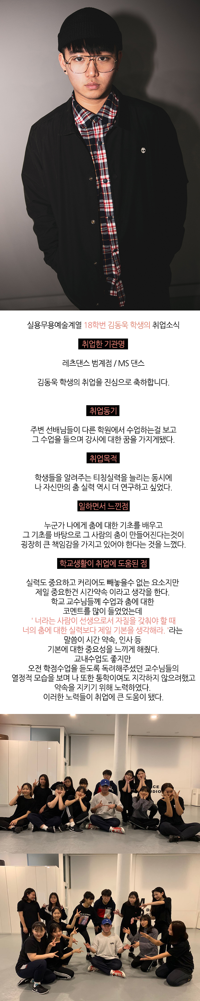 실용무용예술계열 18학번 김동욱 학생 취업소식