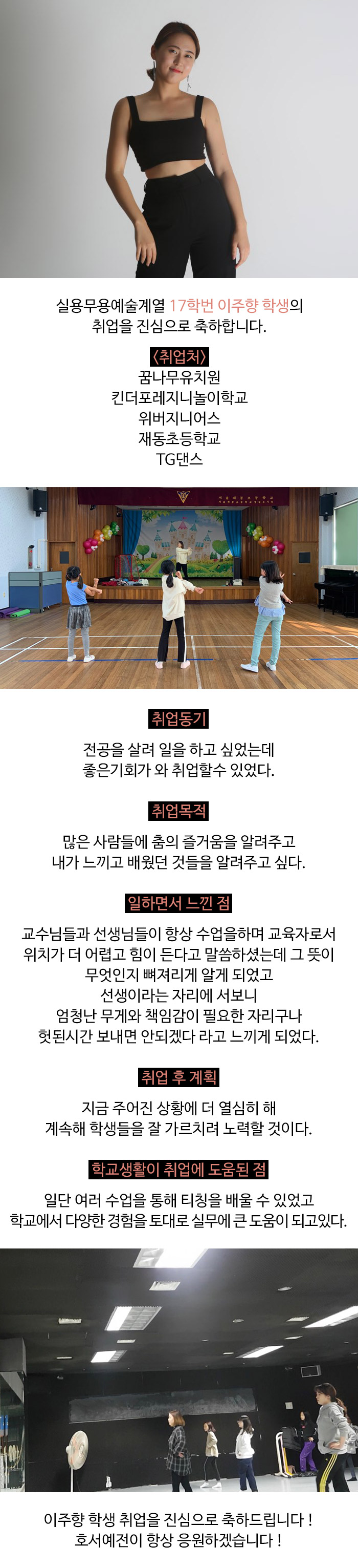 실용무용예술계열 17학번 이주향 학생의 취업소식 입니다.