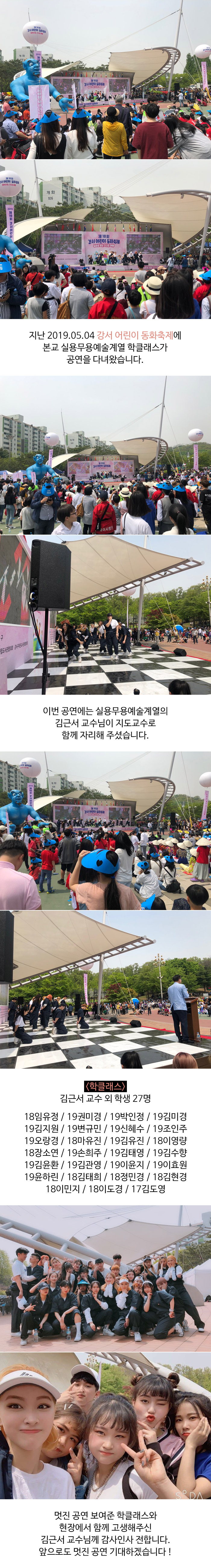 지난 2019.05.04 강서 어린이 동화축제에 본교 실용무용예술계열 학클래스가 공연을 다녀왔습니다.
