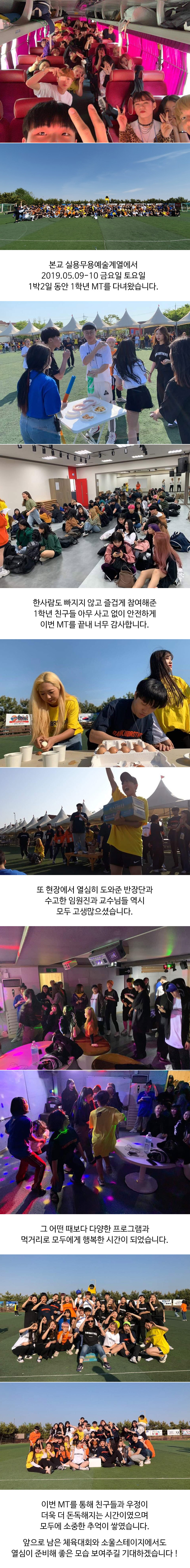 본교 실용무용예술계열에서 2019년 5월 9일 ~ 10일 1박 2일 동안 1학년 MT를 다녀왔습니다.