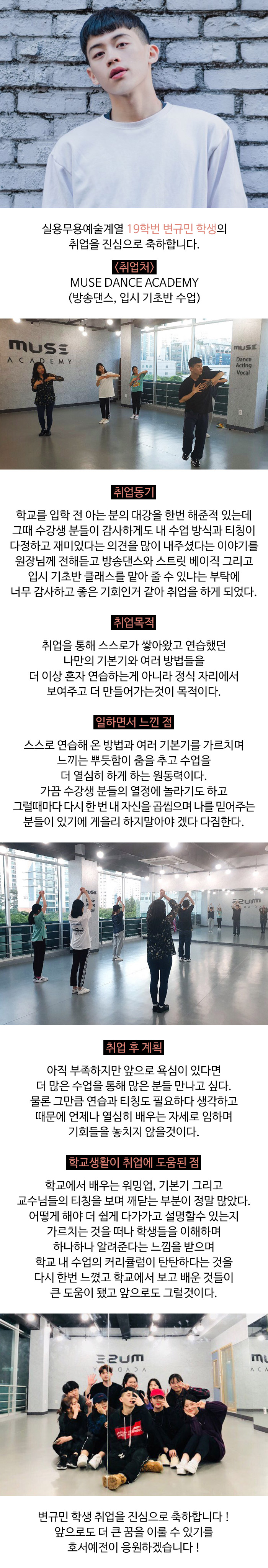 실용무용예술계열 19학번 변규민 학생의 취업소식 입니다.
