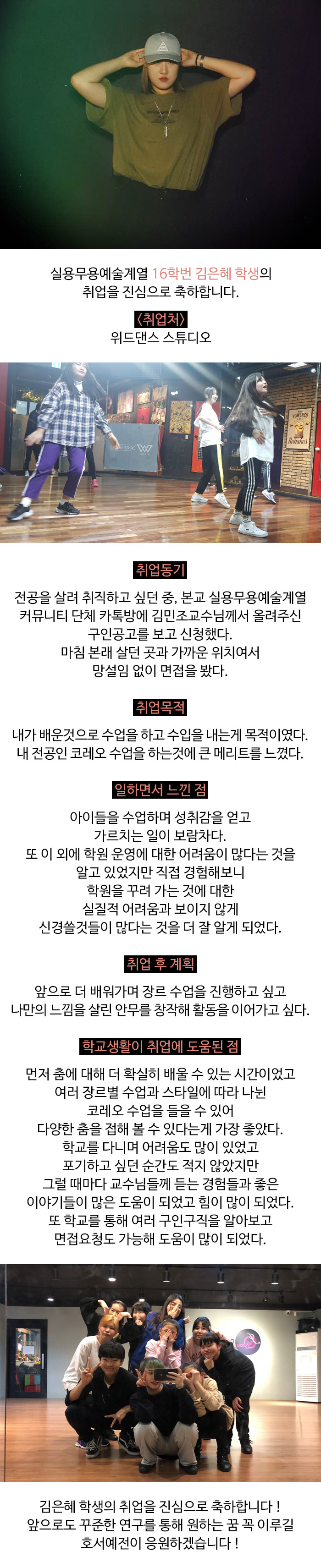 실용무용예술계열 16학번 김은혜 학생 취업소식