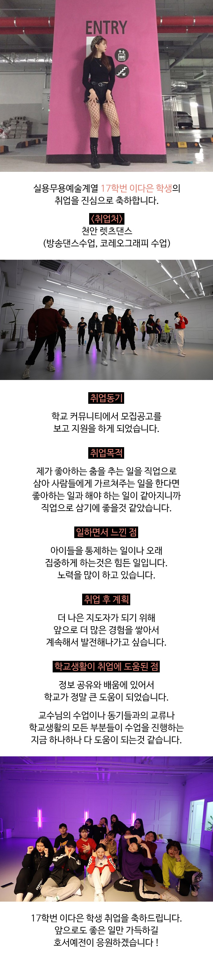 실용무용예술계열 17학번 이다은 취업소식