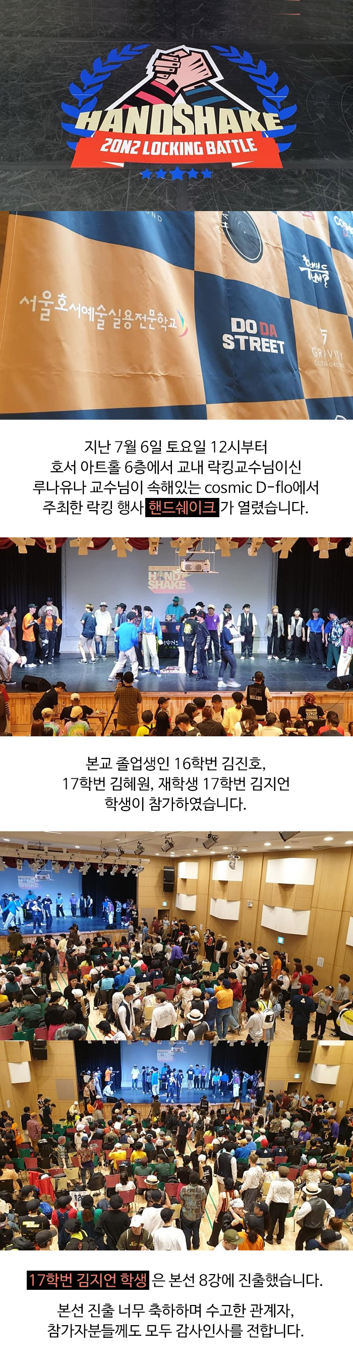 실용무용예술계열 락킹행사 핸드쉐이크 참가소식