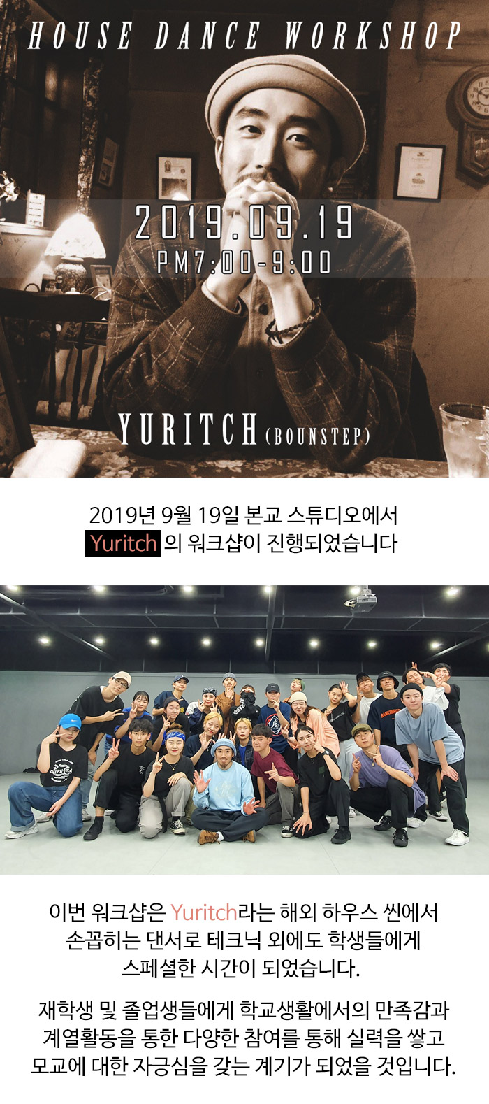 2019년 9월 19일 본교 스튜디오에서 Yuritch 워크숍이 진행 되었습니다.