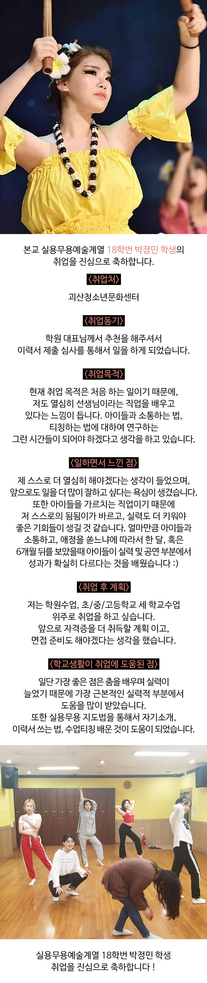 실용무용예술계열 18학번 박정민 학생 취업을 진심으로 축하합니다!