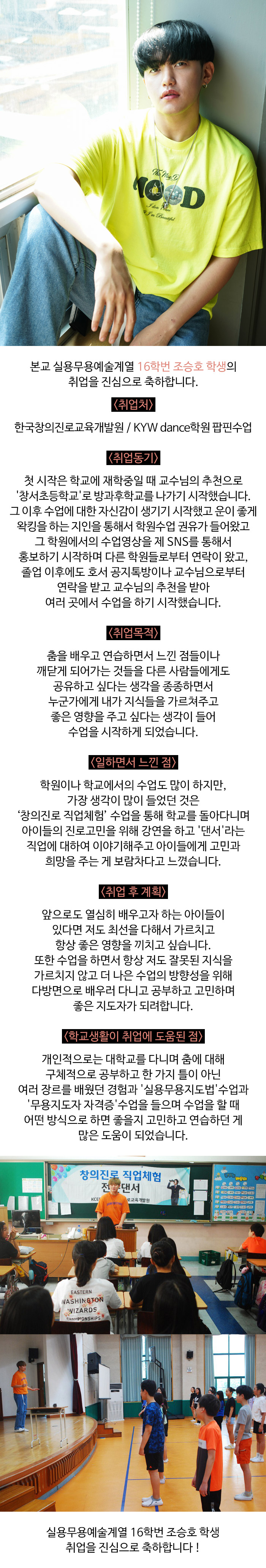 실용무용예술계열 16학번 조승호 학생 취업을 진심으로 축하합니다!