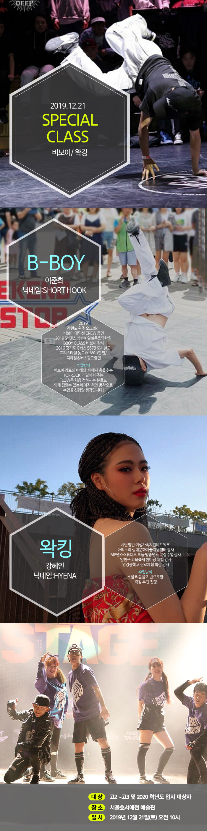 실용무용 체험학교가 오는 12월 21일(토) 오전 10시에 진행합니다. 참여하신 분들께 수료증을 드립니다. 비보이, 왁킹에 관심있는 청소년들의 많은 참여 바랍니다.