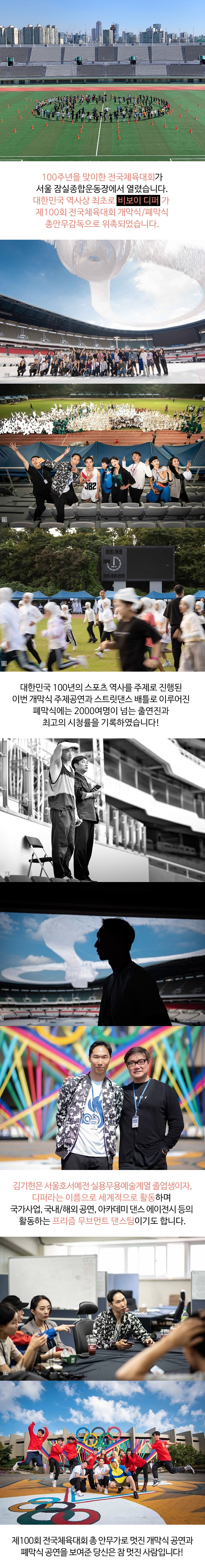 대한민국 역사상 최초로 비보이 디퍼가 제100회 전국체육대회 개막식/폐막식 총안무감독으로 위촉되었습니다.
