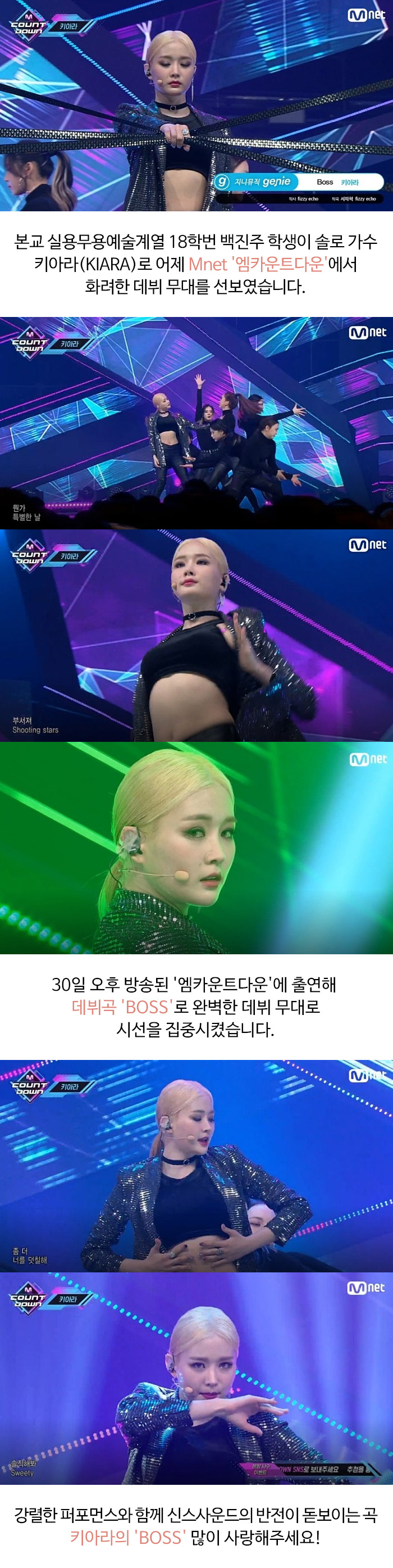 실용무용예술계열 18학번 백진주 엠카운트다운 키아라(KIARA) BOSS 데뷔