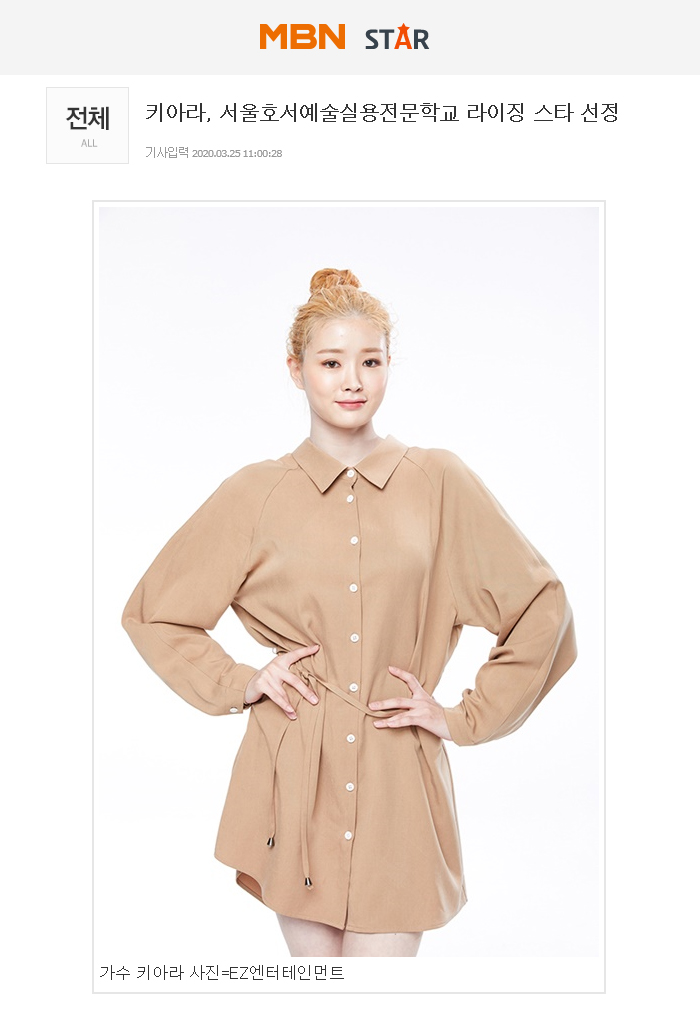 [언론보도]키아라, 서울호서예술실용전문학교 라이징 스타 선정