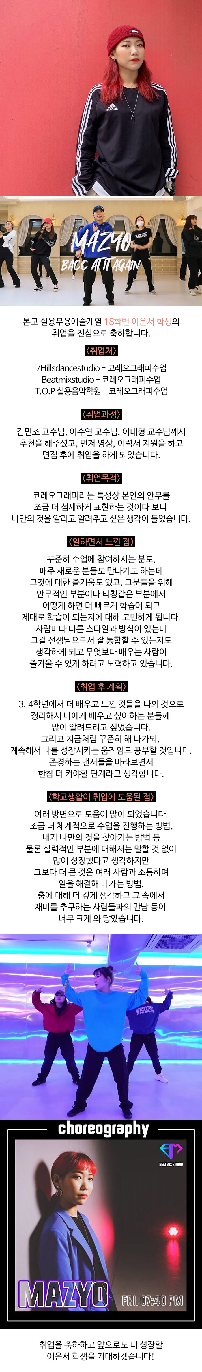 실용무용예술계열 18학번 이은서 학생 취업 소식입니다.