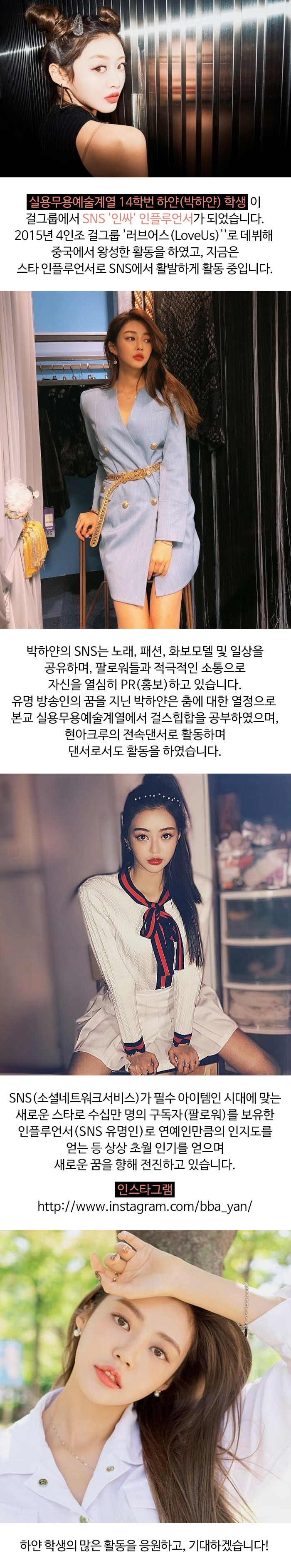 실용무용예술계열 14학번 하얀(박하얀) 학생이 걸그룹에서 SNS '인싸' 인플루언서가 되었습니다.