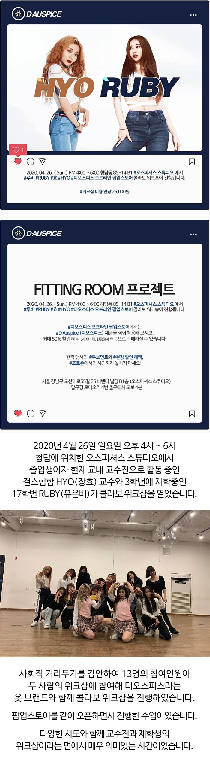 실용무용예술계열 교수 HYO(장효) & 재학생 17 RUBY(유은비) 콜라보 워크샵 소식