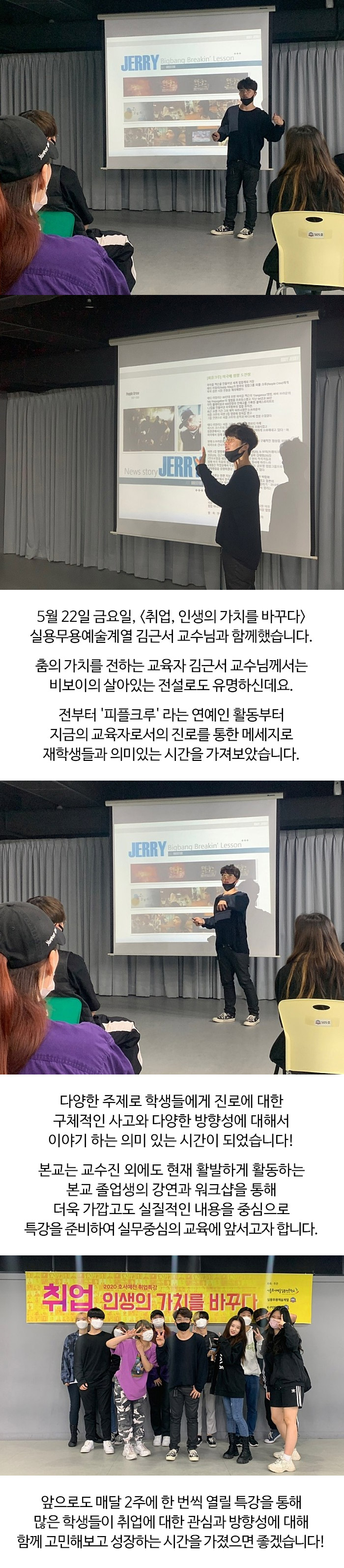 5월 22일 금요일, '취업, 인생의 가치를 바꾸다' 실용무용예술계열 김근서 교수님과 함께했습니다.