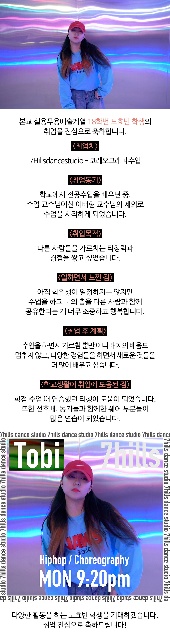 실용무용예술계열 18학번 노효빈 학생 취업 소식입니다.