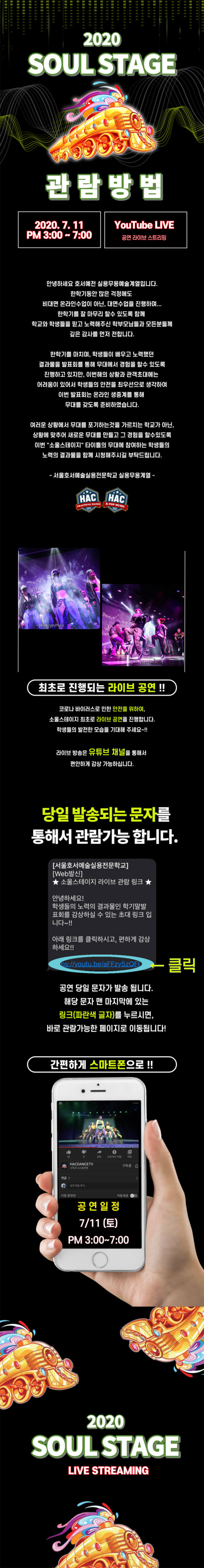 이번 '소울스테이지' 타이틀의 무대에 참여하는 학생들의 노력의 결과물을 함께 시청해주시길 부탁드립니다.