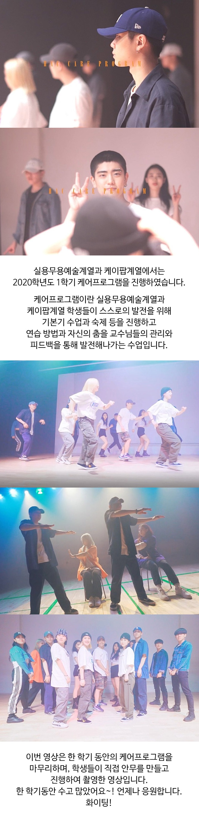 실용무용예술계열과 케이팝계열에서는 2020학년도 1학기 케어프로그램을 진행하였습니다.