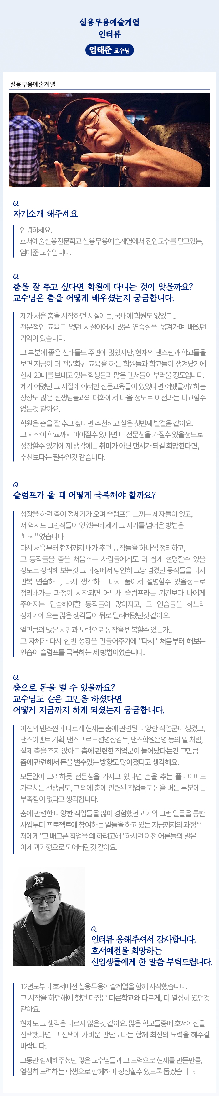 실용무용예술계열에서 전임교수를 맡고있는, 엄태준 교수입니다.