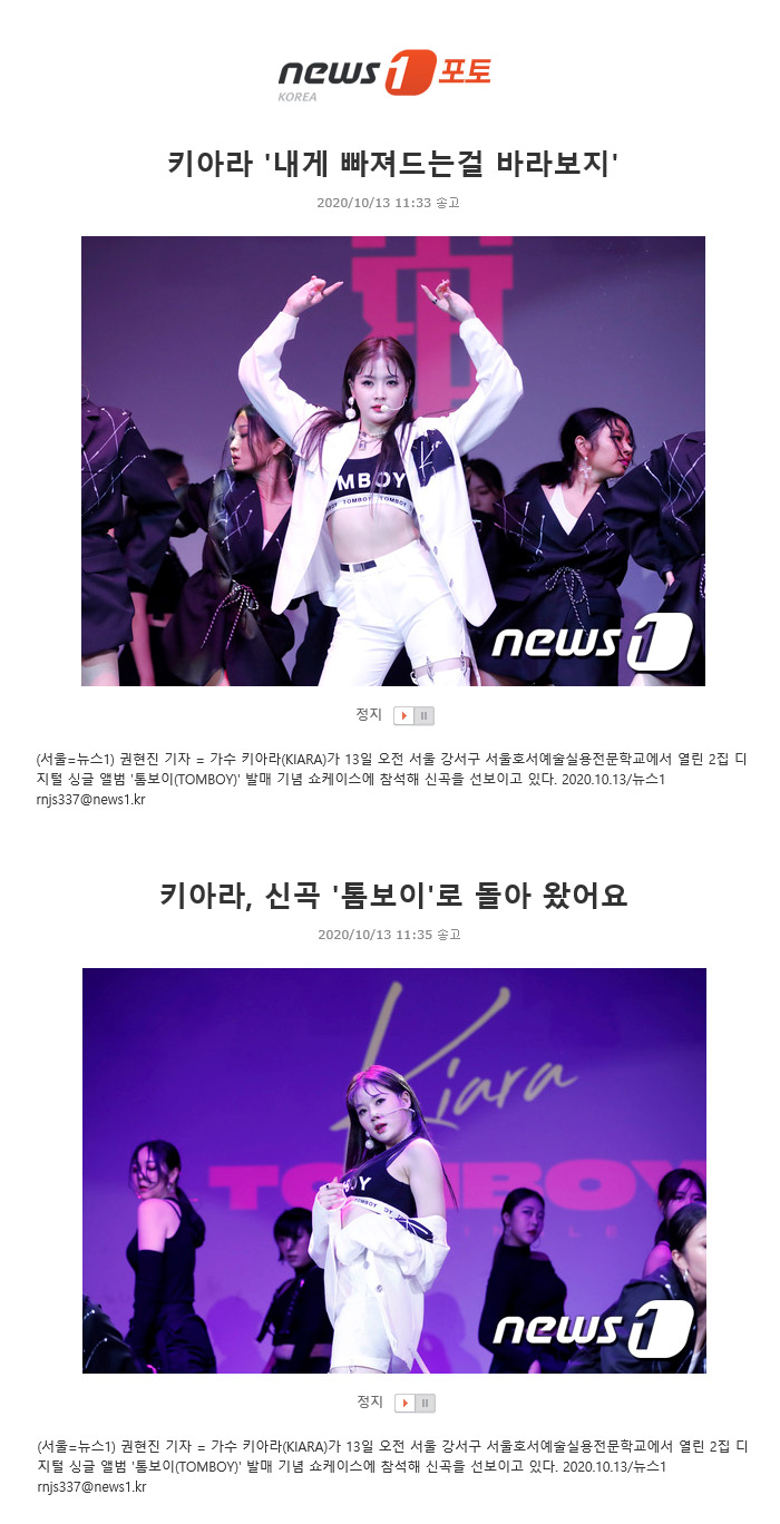 [언론보도]키아라, 신곡 '톰보이'로 돌아 왔어요