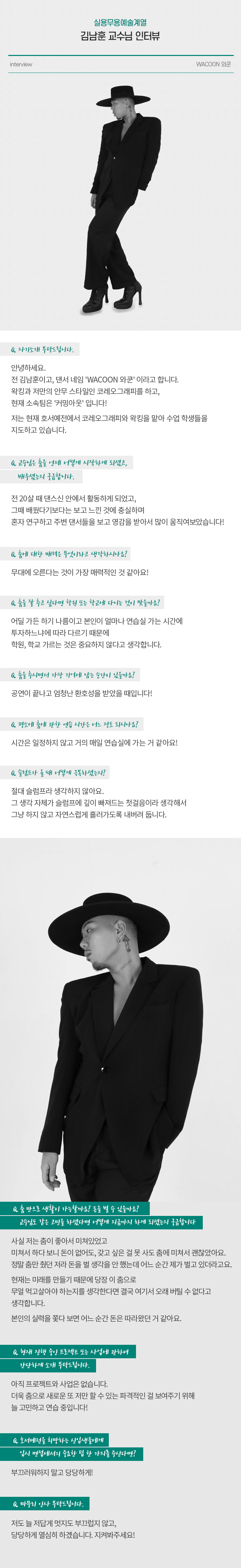 실용무용예술계열 김남훈 교수님 인터뷰