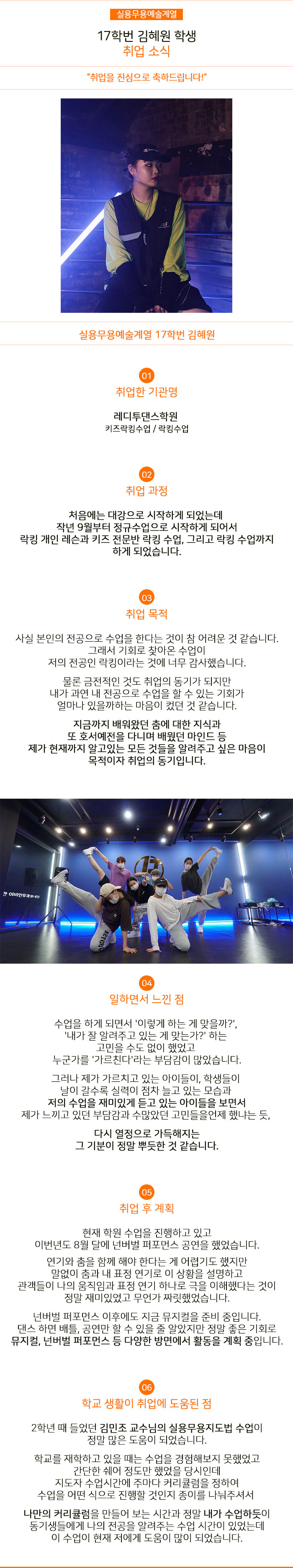 실용무용예술계열 17학번 김혜원 학생 취업 소식