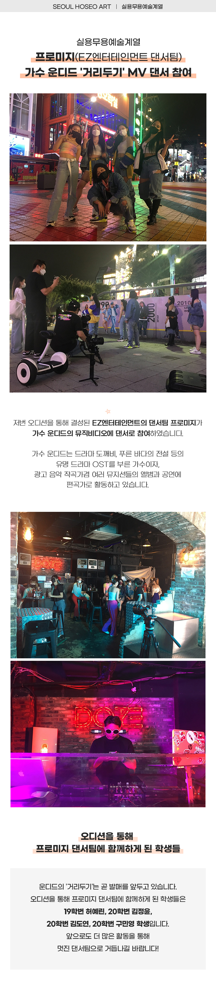 실용무용예술계열 프로미지(EZ엔터테인먼트 댄서팀), 가수 운디드 '거리두기' MV 댄서 참여