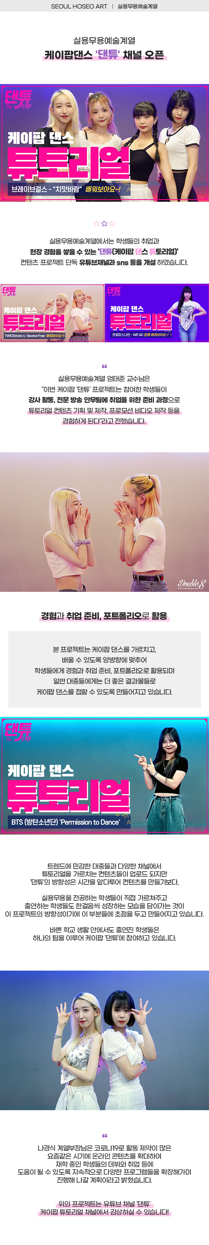 실용무용예술계열 케이팝댄스 '댄튜' 채널 오픈