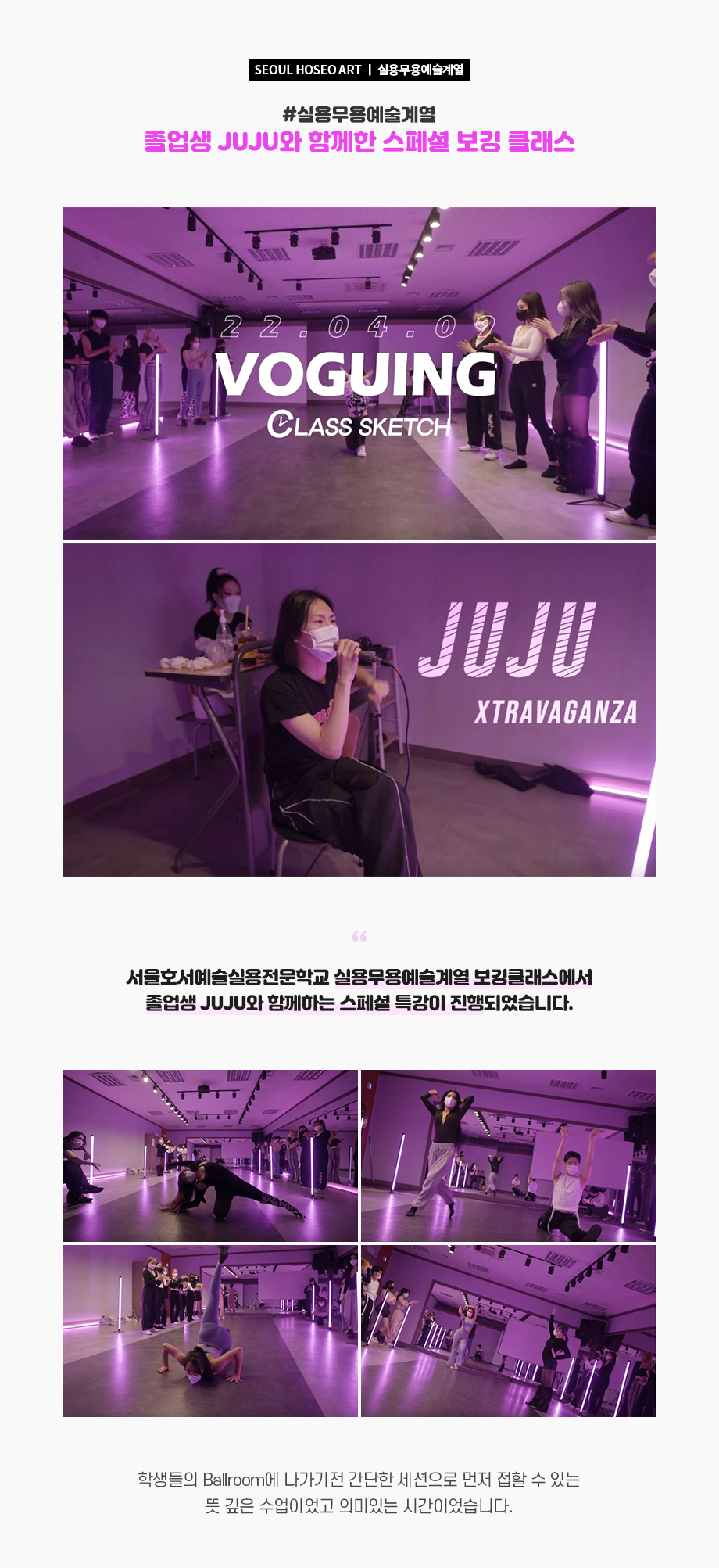 실용무용예술계열 졸업생 JUJU와 함께한 스페셜 보깅 클래스