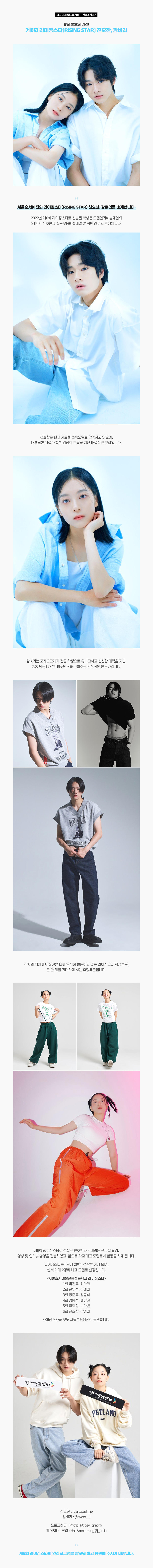 서울호서예전의 라이징스타(RISING STAR) 천호찬, 강벼리를 소개합니다. 2022년 제6회 라이징스타로 선발된 학생은 모델연기예술계열의 21학번 천호찬과 실용무용예술계열 21학번 강벼리 학생입니다. 천호찬은 현재 가르텐 전속모델로 활약하고 있으며, 내추럴한 매력과 힙한 감성의 모습을 지닌 매력적인 모델입니다. 강벼리는 코레오그래피 전공 학생으로 유니크하고 신선한 매력을 지닌, 통통 튀는 다양한 퍼포먼스를 보여주는 인상적인 안무가입니다.