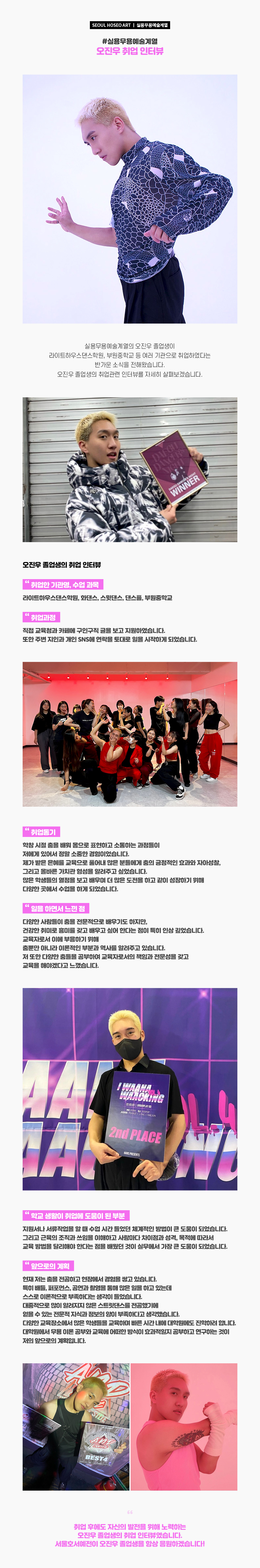 실용무용예술계열 오진우 취업 인터뷰