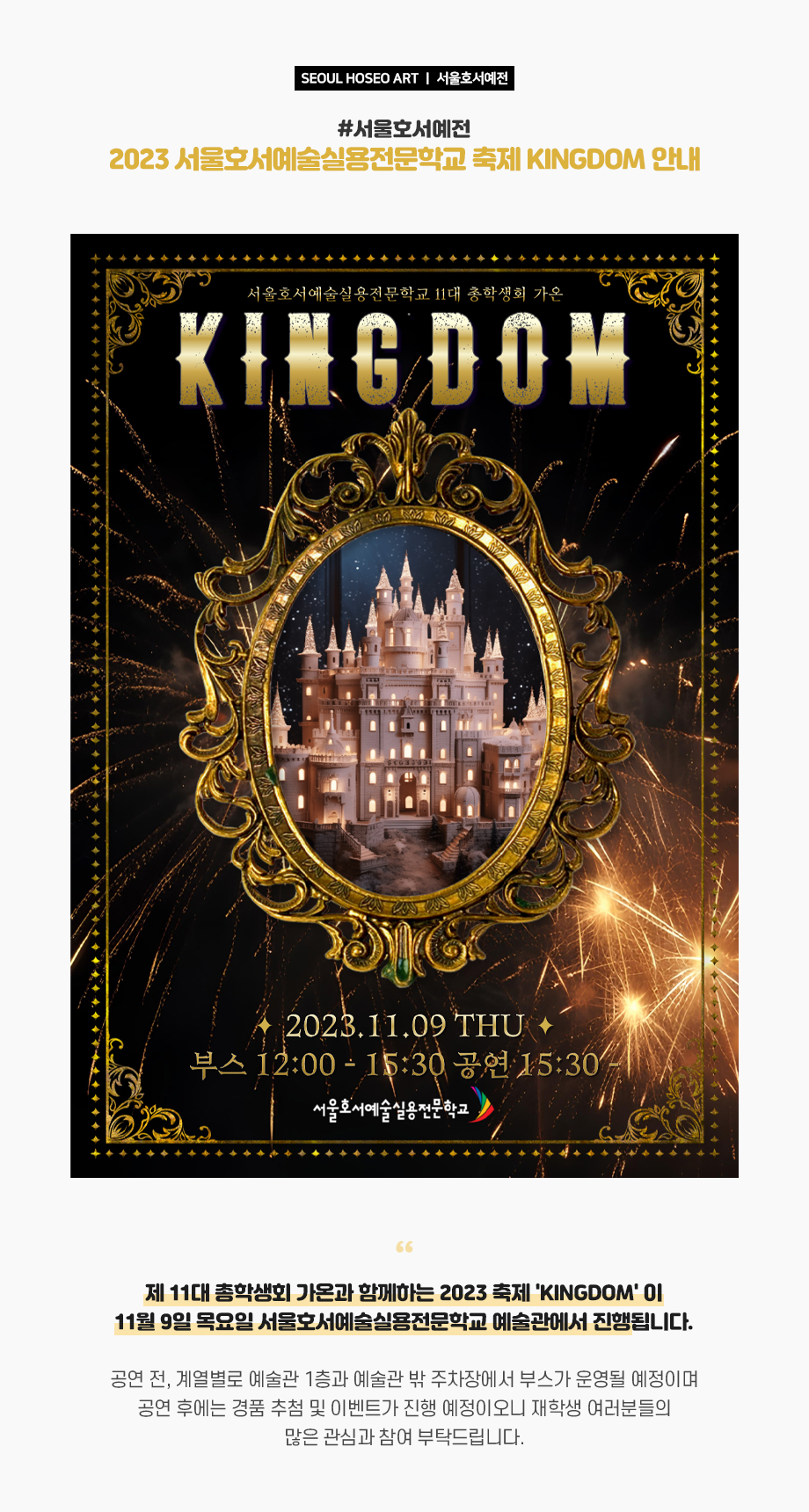 2023 서울호서예술실용전문학교 축제 KINGDOM 안내