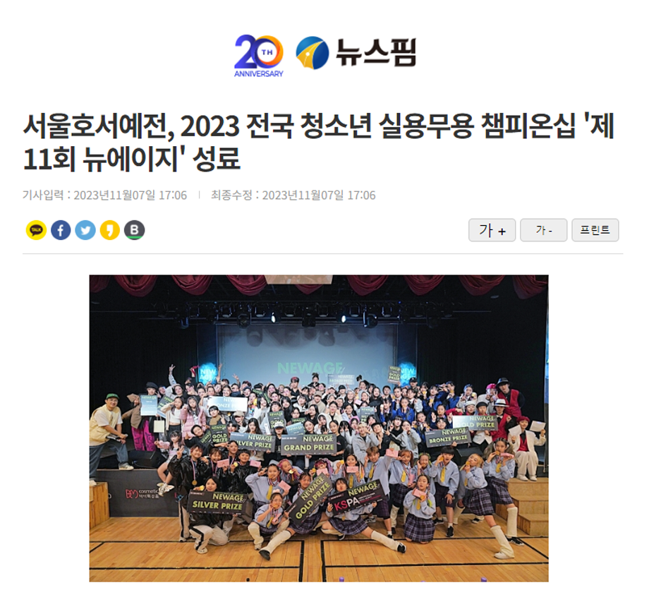 [언론보도] 2023 전국 청소년 실용무용 챔피온십 '제11회 뉴에이지' 성료