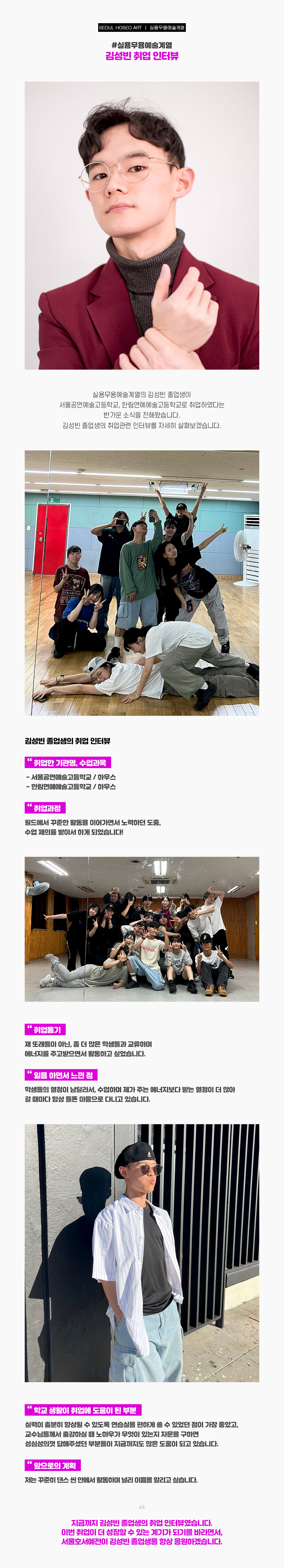 실용무용예술계열 15학번 졸업생 김성빈 취업 인터뷰