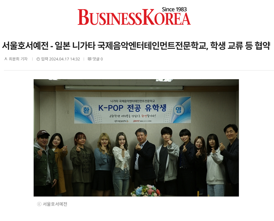 [언론보도] 서울호서예전 - 일본 니가타 국제음악엔터테인먼트전문학교, 학생 교류 등 협약