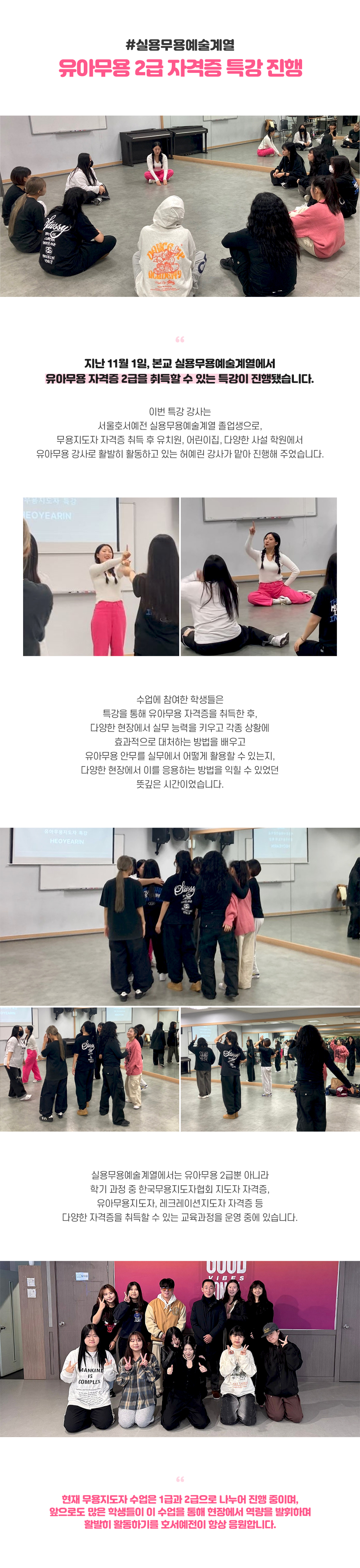 실용무용예술계열 유아무용 2급 자격증 특강 진행